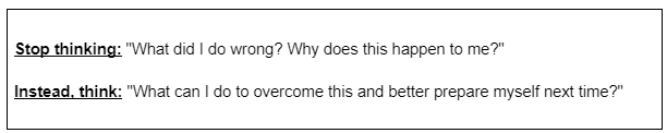 Before making a phone call or going to a meeting, visualise how you want it to go. Create positive scenarios in your head that will help you overcome a rejection if or before it even happens. This way, you'll be prepared for various situations. But don't overthink it! Visualise your goals and steer the situation to reach there.